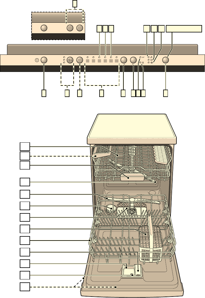 - Les figures représentant le bandeau de commande et le compartiment intérieur de l’appareil se trouvent en début de notice, dans la couverture.