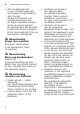 Wat te doen bij storingen? Storing Foutcode “:ƒ† brandt. Foutcode “:ƒˆ brandt. Een andere foutcode verschijnt op de cijferindicatie. (“:‹‚ tot “:„‹) Display knippert. Bijvulindicatie voor zout @ en/of glansspoelmiddel H brandt. Bijvulindicatie voor zout @ en/of glansspoelmiddel H brandt niet. Na afloop van het programma blijft er water in het apparaat staan. Oorzaak Waterafvoerpomp geblokkeerd of afdekking van de waterafvoerpomp niet vastgeklikt. Netspanning te laag.