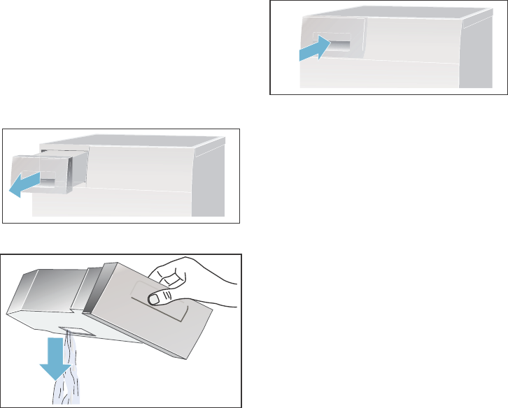 - Entleeren Sie nach jedem Trocknen den Kondenswasser-Behälter, da sonst das nächste Trocknungsprogramm abgebrochen werden kann, weil der Kondenswasser-Behälter voll ist.