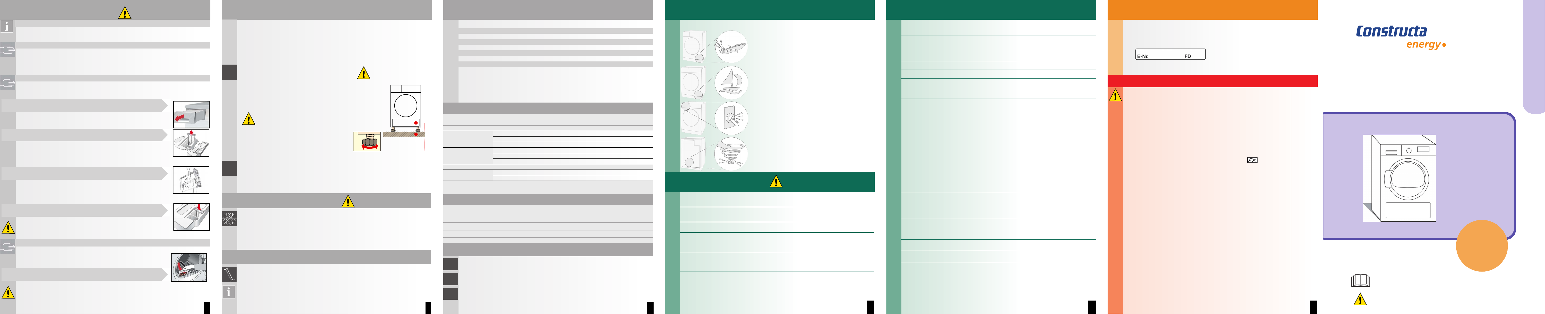 – Trockner bei Defekt oder Verdacht auf Defekt nicht verwenden. Reparatur nur durch Kundendienst.