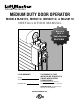 MEDIUM DUTY DOOR OPERATOR MODELS MJ5011U, MH5011U, MHS5011U, & MGJ5011U INSTALLATION MANUAL Now with Built in Radio Receiver 315 MHz Your model may look different than the model illustrated in this manual. 2 YEAR WARRANTY Serial # (located on electrical box cover) Installation Date THIS PRODUCT IS TO BE INSTALLED AND SERVICED BY A TRAINED DOOR SYSTEMS TECHNICIAN ONLY. Visit www.liftmaster.com to locate a professional installing dealer in your area.