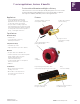 F SECTION Single pole connectors F-series E1010 plugs & receptacles Product description Cable size #8 – #4 AWG 120V/AC Up to 150A continuous, 200A intermittent F-series E1010, reinforced thermoplastic Features E1010-61 E1010-308 • Double cam principle provides a positive, vibration-proof connection • Contacts carefully machined from a high conductivity brass to a smooth sliding fit and easy locking action • Self-compensating for wear • • No moving contact surfaces, eliminating arcing or burnin