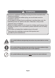 Precautions WARNING Operation and Maintenance This appliance can be used by children aged from 8 years and above and persons with reduced physical, sensory or mental capabilities or lack of experience and knowledge if they have been given supervision or instruction concerning use of the appliance in a safe way and understand the hazards involved. Children shall not play with the appliance. Cleaning and user maintenance shall not be made by children without supervision.