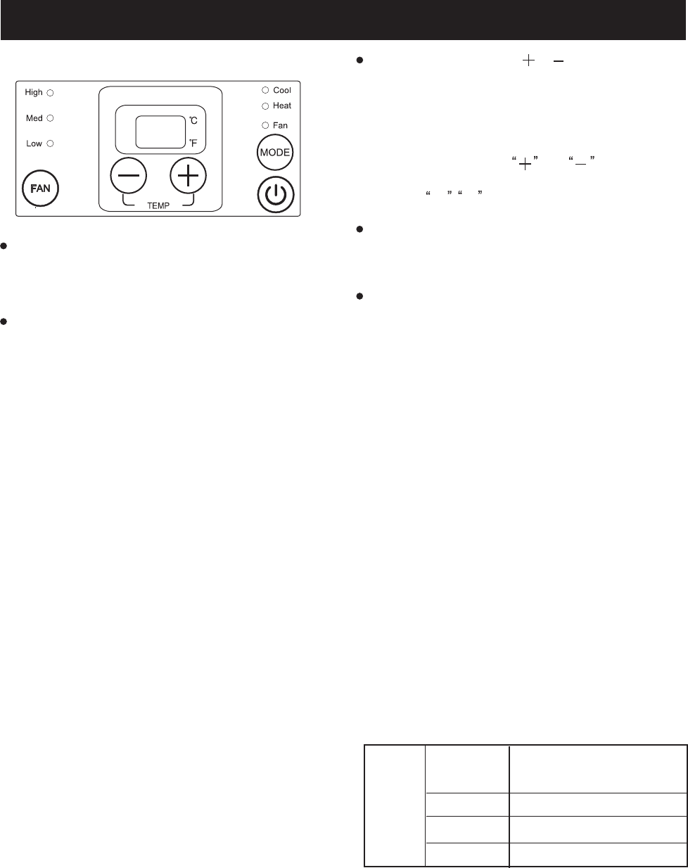 COOL-HEAT-FAN-COOL.The indicator light beside