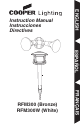 ENGLISH RFM300 (Bronze) RFM300W (White) Congratulations. You have just purchased a Cooper Lighting digital wireless communication system. The battery operated landscape motion sensor contains a radio frequency (RF) transmitter. The twin par floodlight contains a RF receiver and can be mounted to a standard junction box. When the sensor detects motion, it automatically sends a signal to the receiver, which turns on the floodlight.