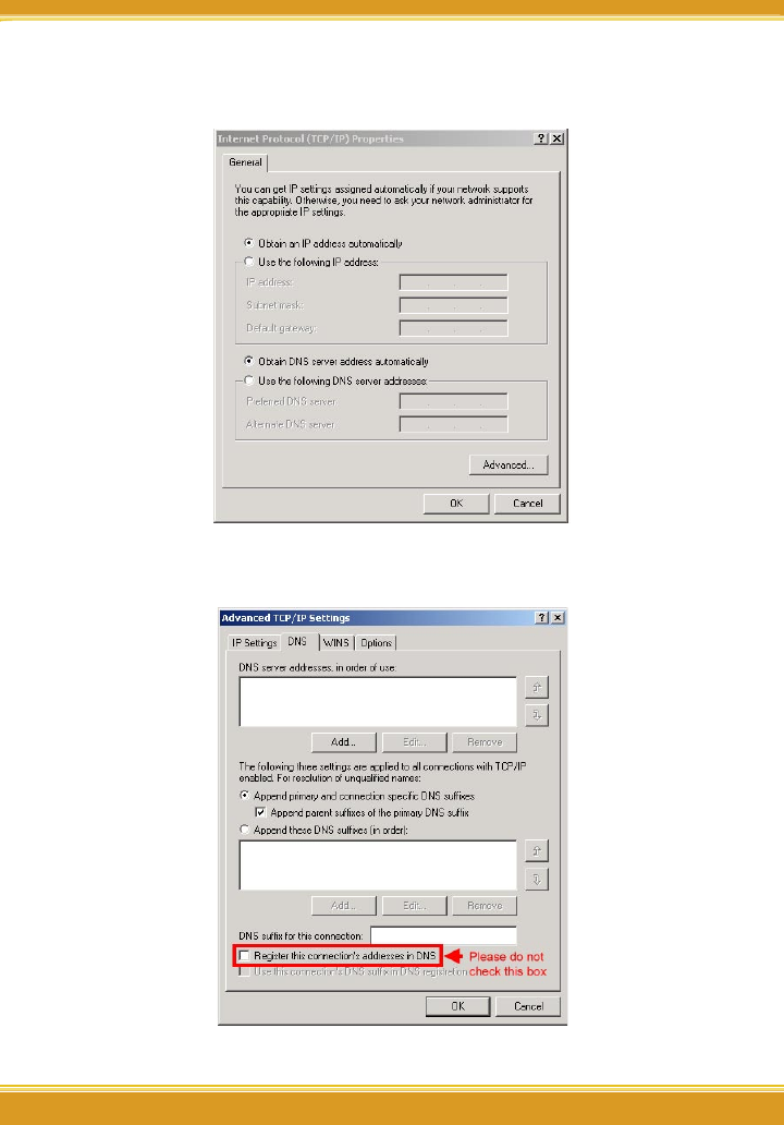 (5) Click [DNS] tab in [Advance TCP/IP setting] page, and unselect [Register