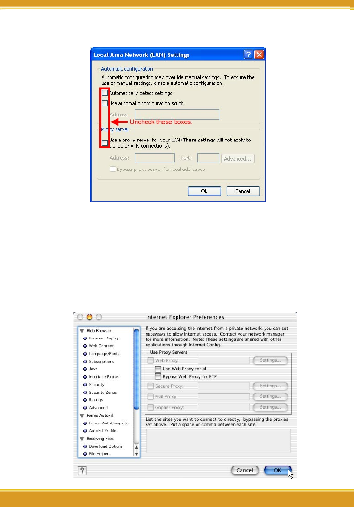 (3) Unselect all three options in the [Local Area Network LAN Setting].