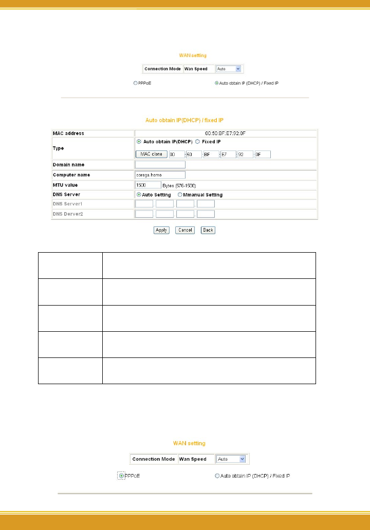 A. For auto obtain IP (DHCP):