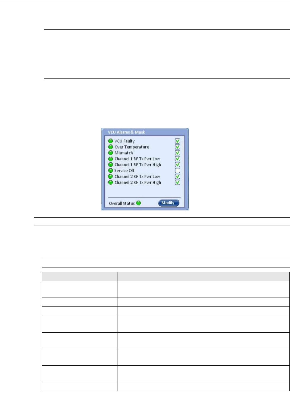 To verify proper operation of the system, refer to the VCU Alarms and Mask sub-tab (in the
