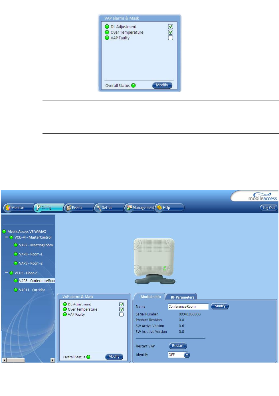 Note 1: VAP alarm mask is saved in the VCU, associated with the port to which the VAP is