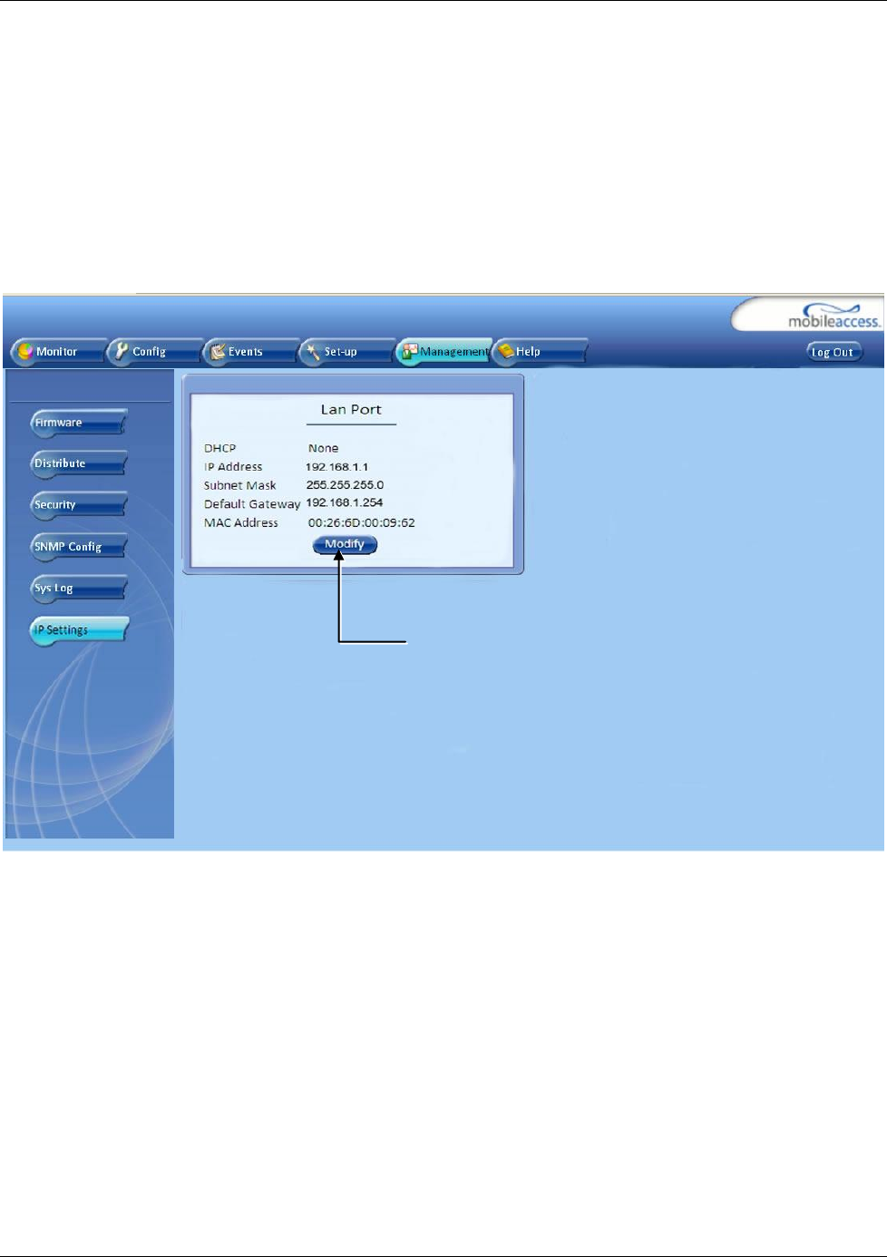 The IP Settings tab is used for viewing and modifying the network parameters. The default