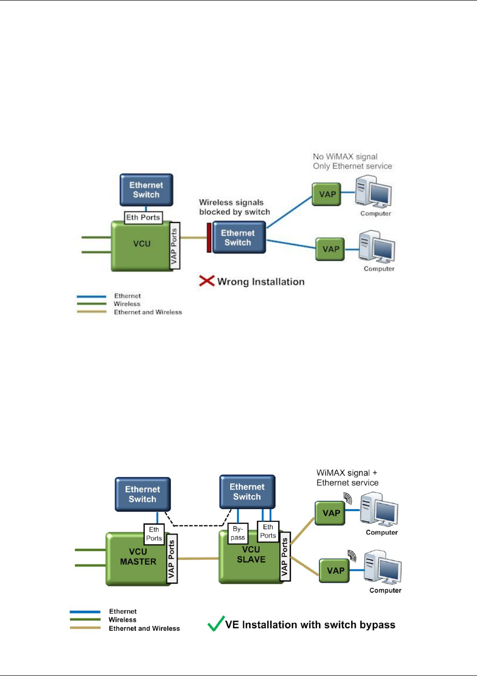 In VE installation, any switch located in the path between the VCU and the VAPs will block the