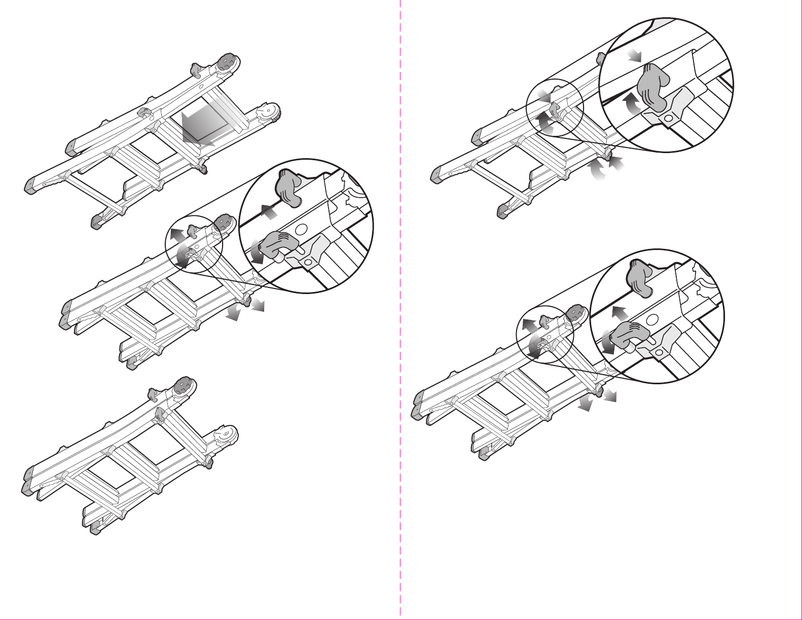 de bloqueo de los rieles. Hay cuatro pasadores accionados por resorte en