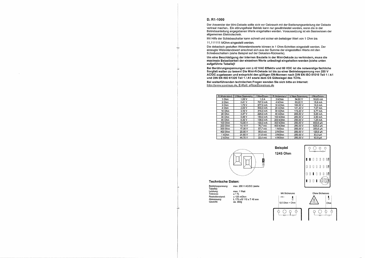 R1-1000Measurement decades Decade resistor 1 Ω - 11.11111 M Ω 250 V