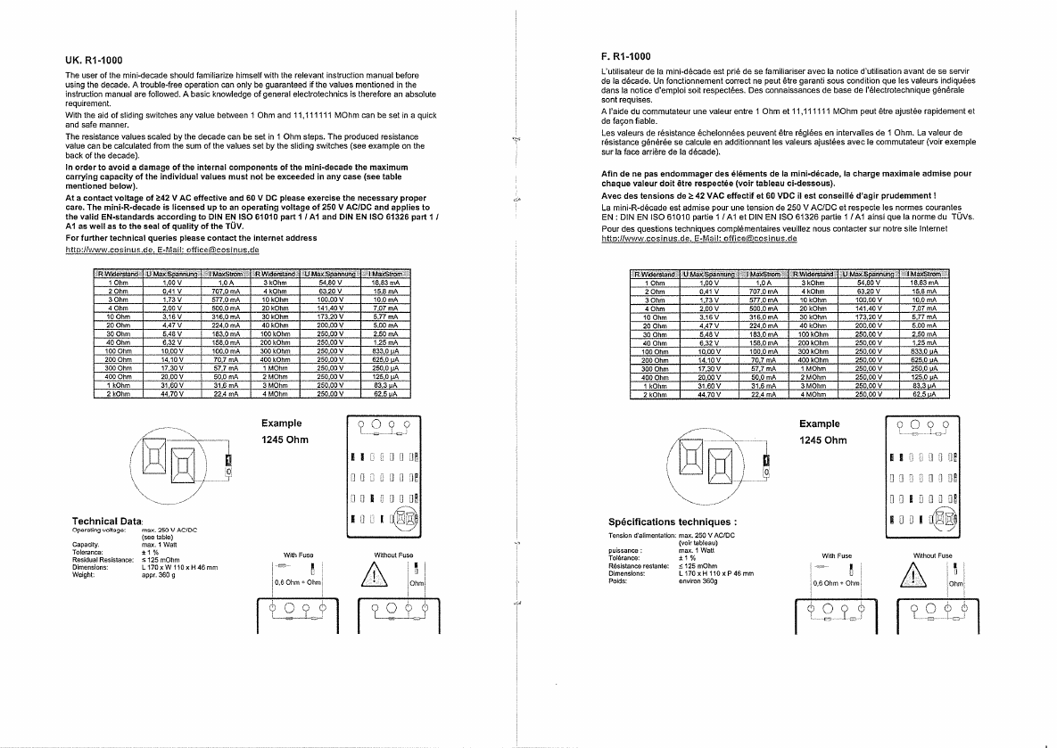 R1-1000Measurement decades Decade resistor 1 Ω - 11.11111 M Ω 250 V