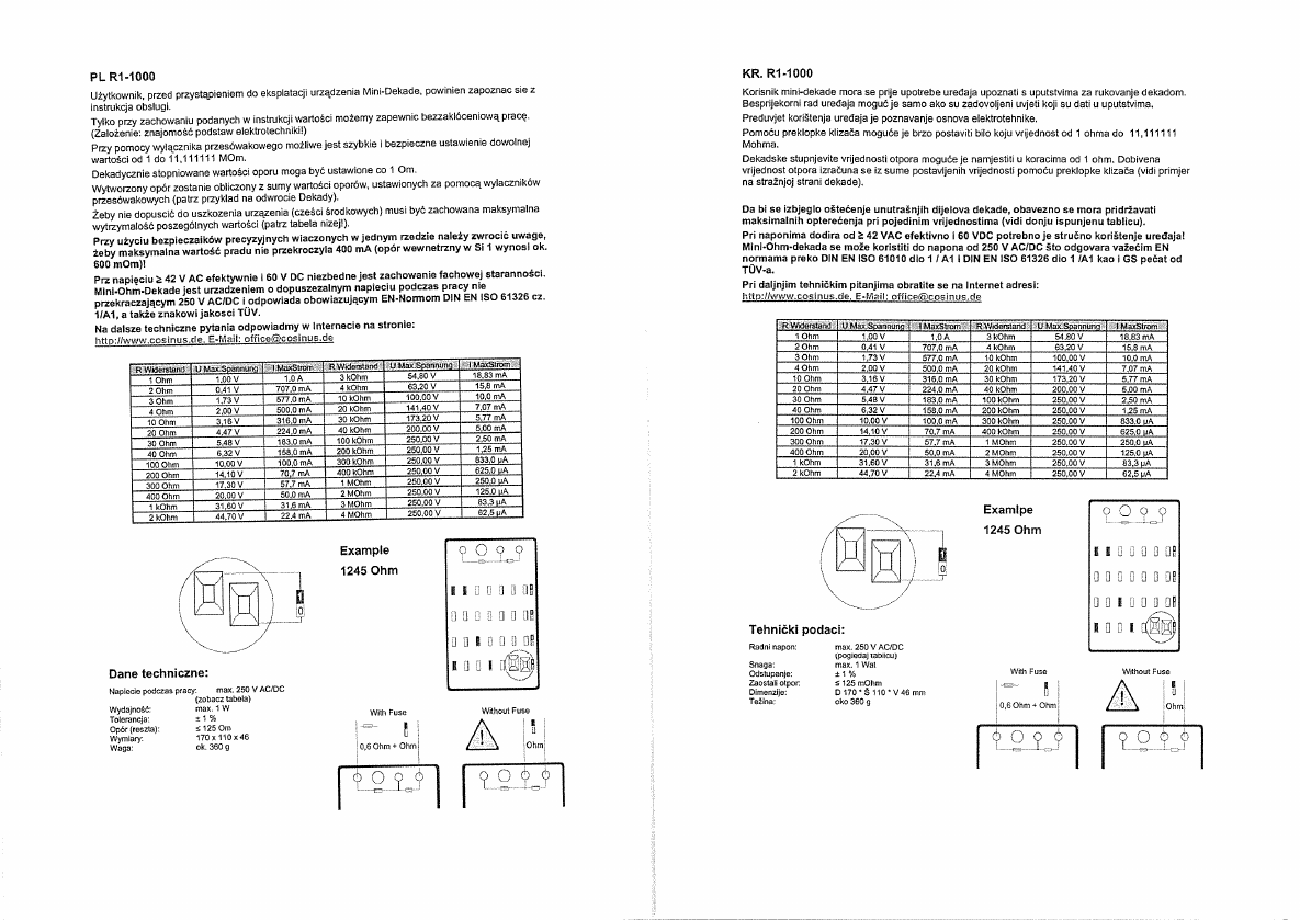 R1-1000Measurement decades Decade resistor 1 Ω - 11.11111 M Ω 250 V