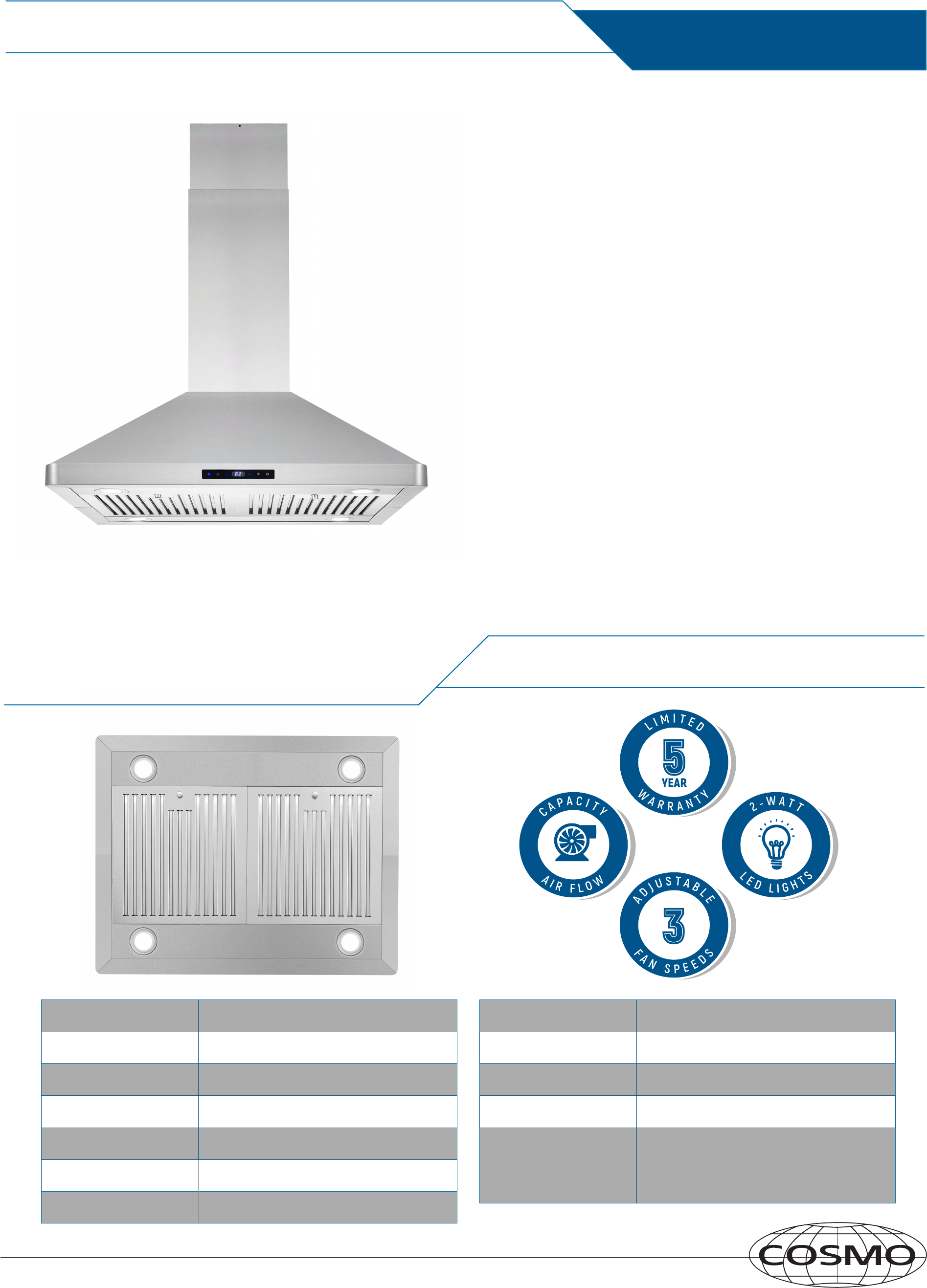 kitchen, the COS-63ISS75 is powered by 380 CFM