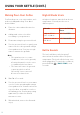 USING YOUR KETTLE Boiling Water Note: • Use filtered water for perfect pour over brewing. 6. • If you start the kettle without water in it, the kettle will turn off and controls will be disabled. See Boil-Dry Protection (page 11). 1. 2. Add at least ½ cup / 118 mL of filtered water to the kettle. Do not fill above the “MAX” line. Wipe any water from the outside of the kettle and the base. Put the lid on the kettle and make sure it fits securely. Place the kettle on the power base. 3. Plug in the cord.