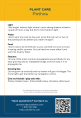 Light i like bright, indirect tight where | cast a strong shadow at least a coupe of hours a day, but don't mind medium tight Water 1 don't want my roots to stay wet, so let the tap inch of two of the potting soil dry before you water me again Food i don't need a Lot of fertilizer, so you can feed me once of twice in spring and/or summer.