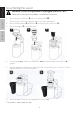 Clean the power/base unit with a damp, lint-free cloth. Do not get it wet. Do not use abrasive tools or harsh cleaning solutions. 3. If the appliance is assembled, disassemble the appliance by following the steps in the "Assembly" section in reverse order. 4. Clean the appliance's parts (all parts except for the base unit and cord) using hot water and a mild detergent. The brush (15) can be used to clean the filter (4). Wipe all parts completely dry after cleaning.
