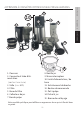2. Placez la pulpe (13) et les bacs à jus (14) sous la pulpe (7) et le jus (8) becs.