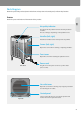 Parts Diagram Check the parts of the product (exterior in the front and top view and control panel) and how they function. Exterior Check the parts and functions of the exterior of the product. EN Air quality indicator This shows the air pollution level around the product in real time. The color changes depending on the pollution level. Handles (left, right) Hold these handles to lift or transport the air purifier. Covers (left, right) Open these covers when cleaning or replacing the filters.