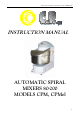 Instruction manual for spiral mixer mod. CPM80-200 General information Cap. 1 1.1 Documentation supplied • • Instruction manual ( this booklet ) Spare parts catalogue Other documentation • 1.2 Wiring diagrams This manual ADRESSEES • • • • 1.3 Carrier Installer End user Maintenance engineer Information property rights This manual contains copyright information. All rights are reserved. No part of this manual can be reproduced or photocopied without prior written permission of the manufacturer.