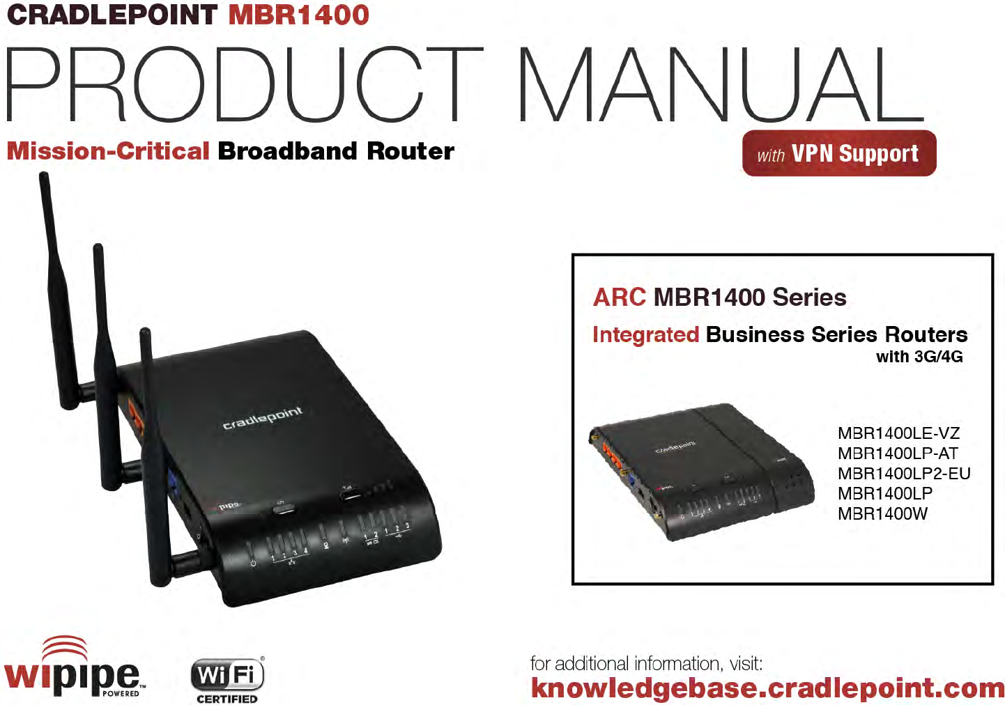 CRADLEPOINT MBR1400 | USER MANUAL – Firmware version 5.0 1.4 CradlePoint ARC MBR1400 Series The CradlePoint ARC MBR1400 Series includes a CradlePoint 3G/4G business-grade modem with the MBR1400 and creates an effortless instant network from high-speed wireless broadband. CradlePoint integrated business-grade modems are specifically designed to provide the highest level of performance, reliability, and security for 24x7 business-critical applications.