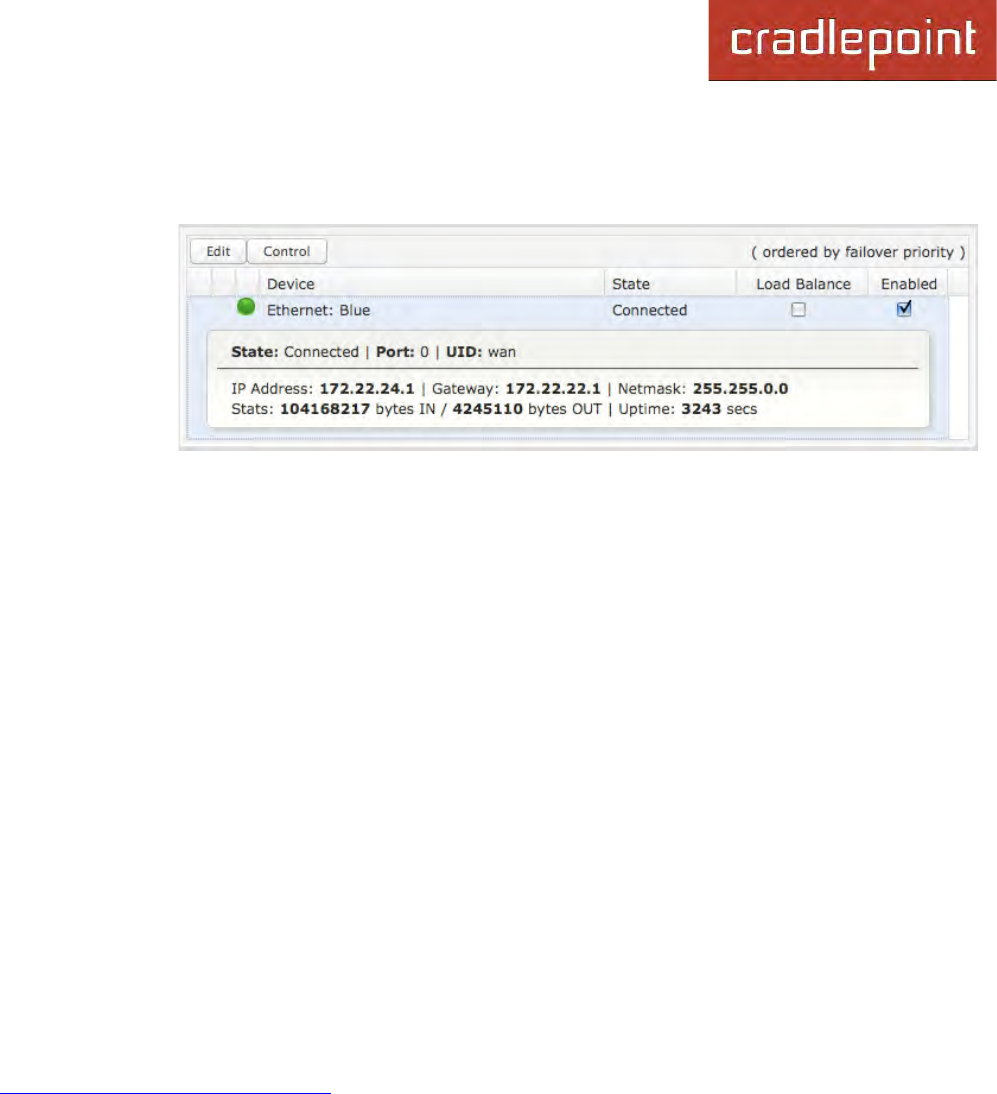 Click “Edit” to view configuration options for the selected device. For 3G/4G modems, click “Control” to view options to