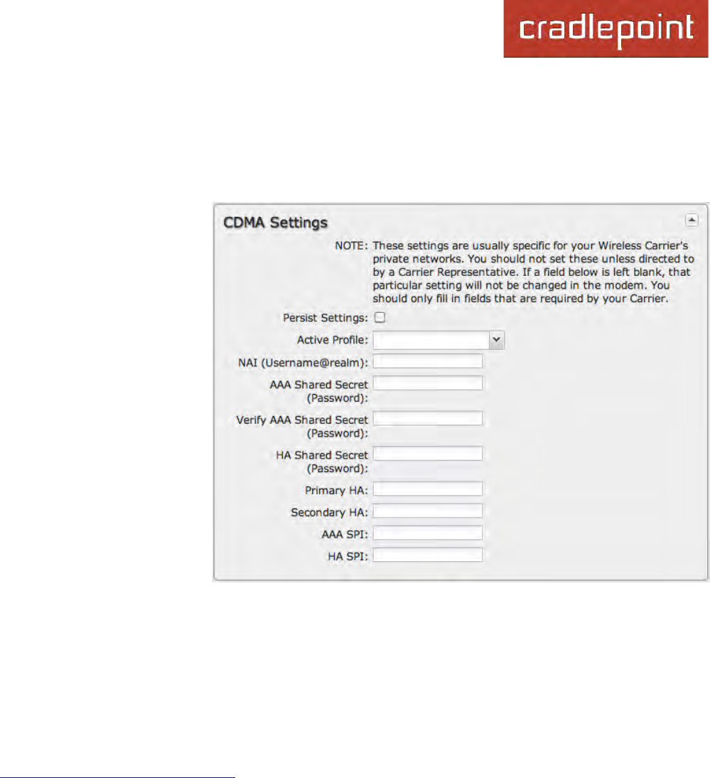 by a carrier representative. If a field below is left blank, that particular setting will not be changed in the modem. You
