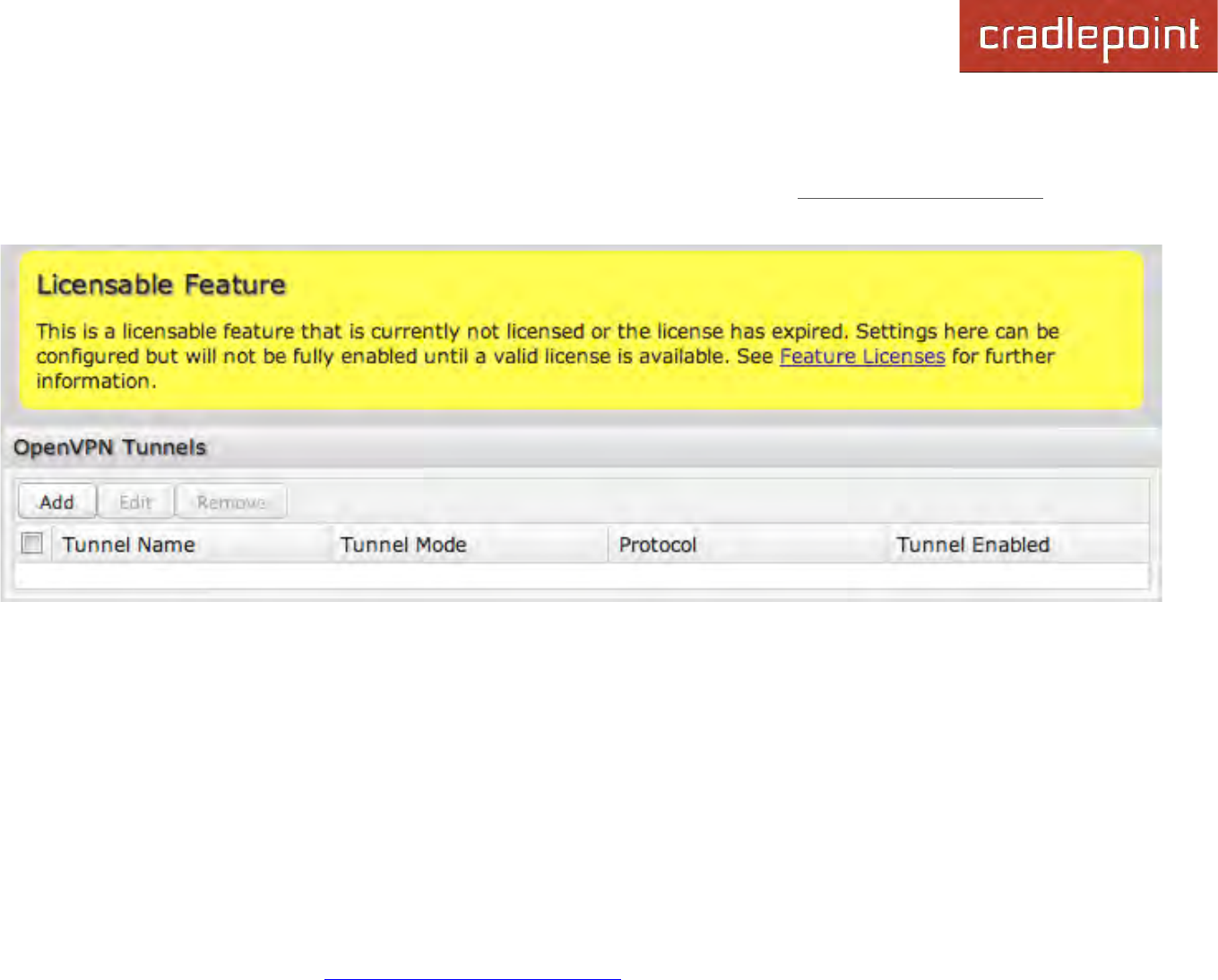 NOTE: Using OpenVPN Tunnels requires a feature license and hardware version 2.0. Go to System Settings → Feature Licenses to enable this
