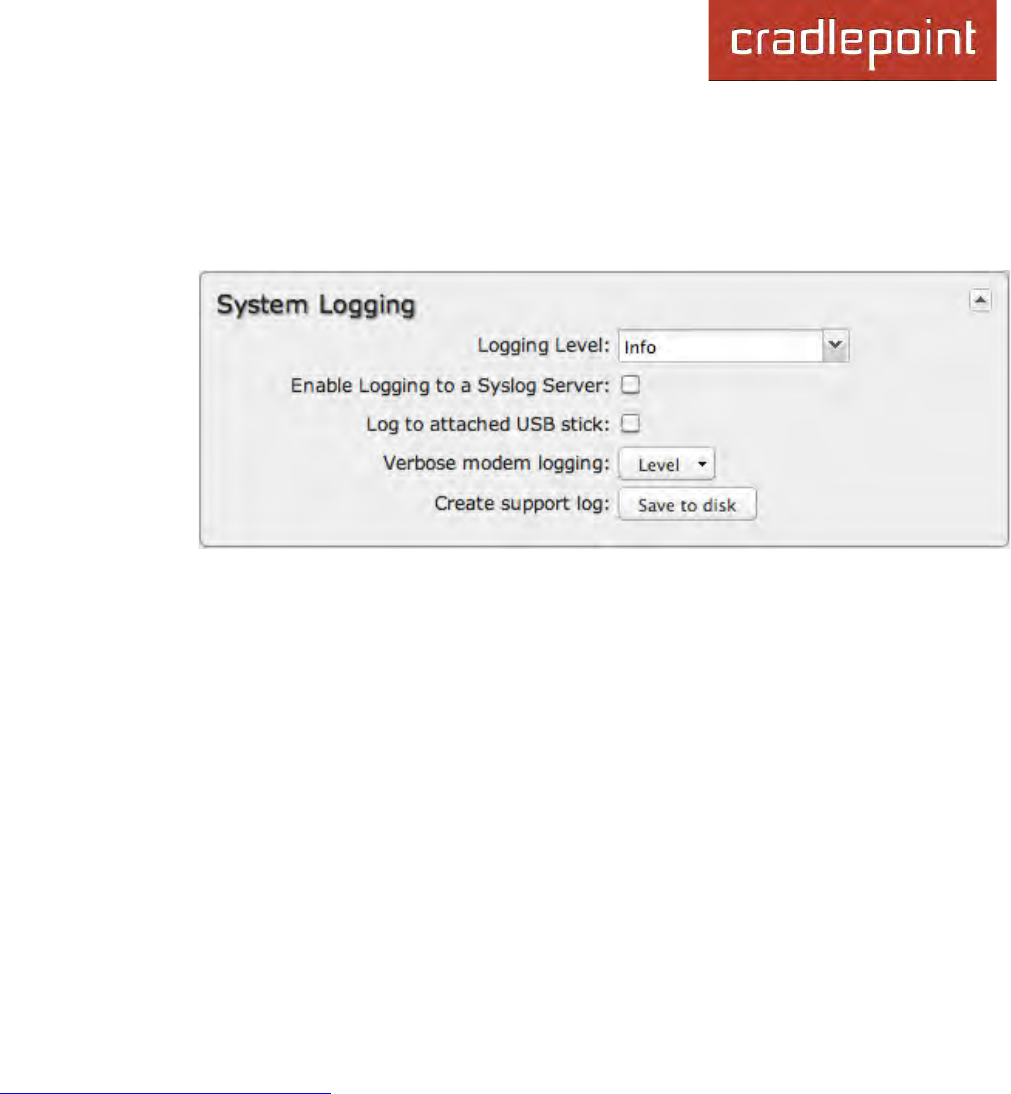 Log to attached USB stick: Only enable this option if instructed by a CradlePoint support agent. This will write a very