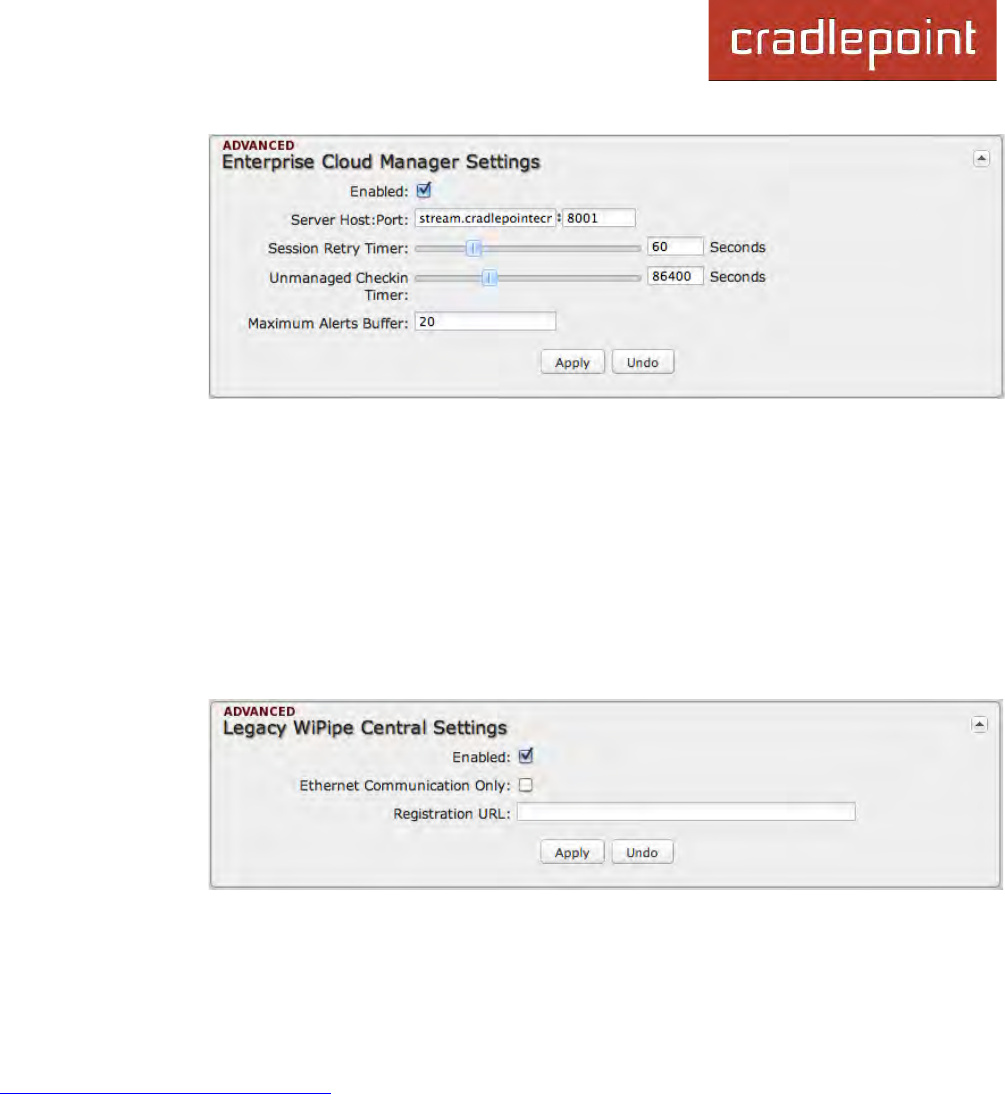 • Registration URL: Register your router using the code provided by CradlePoint when you purchase WiPipe