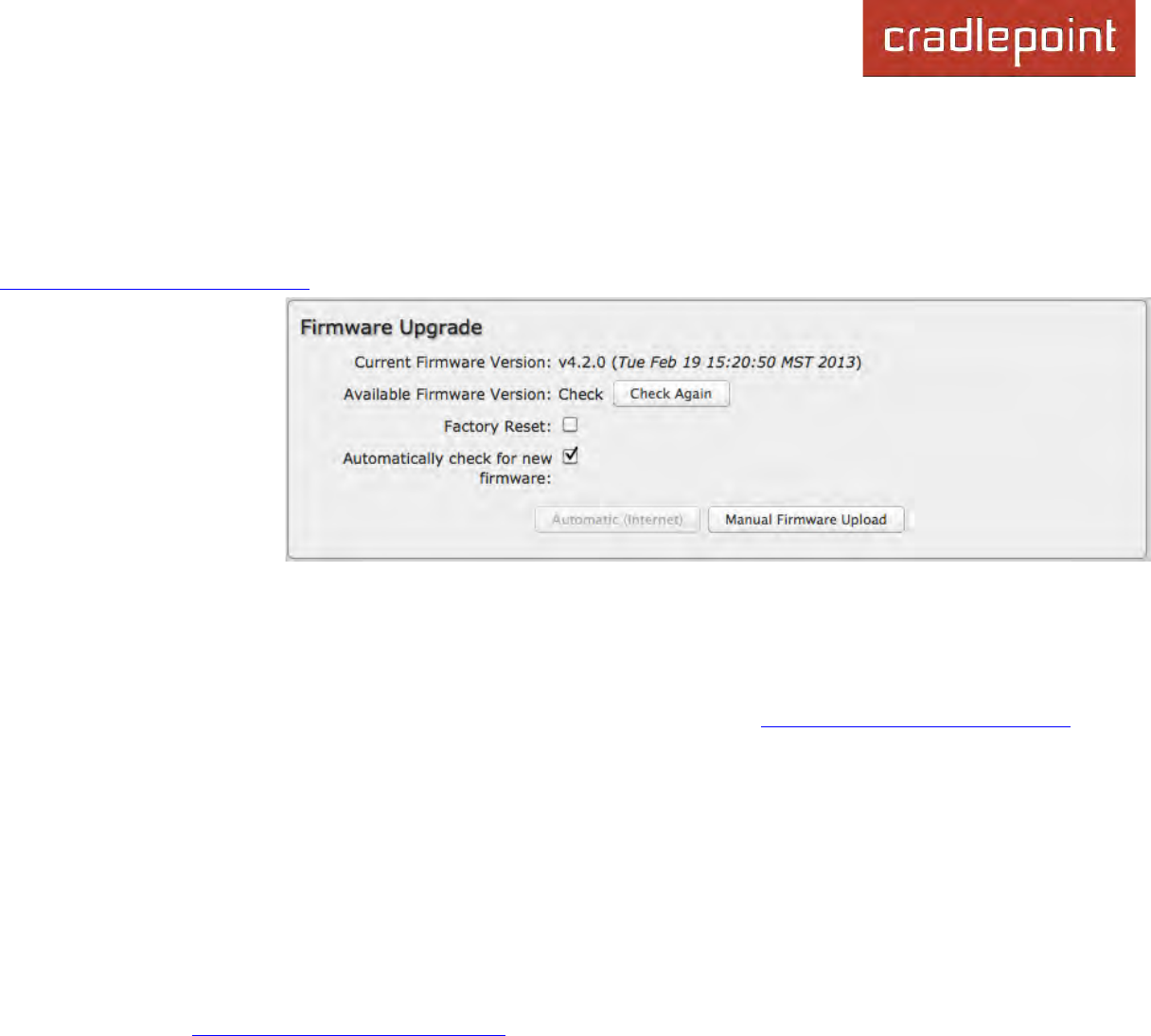 Manual Firmware Upload: Upload the router firmware from an attached computer. (Go to www.cradlepoint.com/firmware