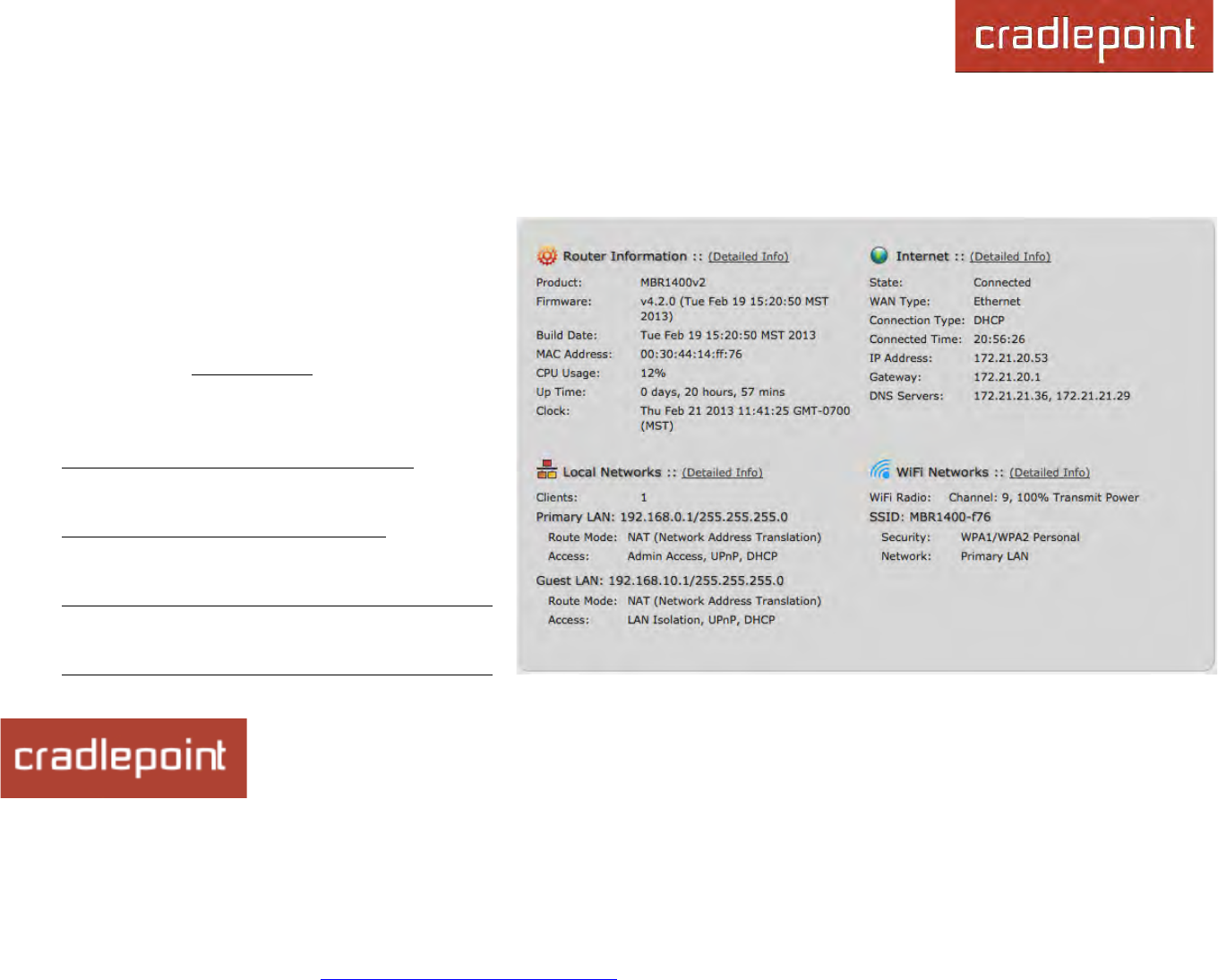© 2013 CRADLEPOINT, INC. PLEASE VISIT HTTP://KNOWLEDGEBASE.CRADLEPOINT.COM/ FOR MORE HELP AND RESOURCES PAGE 45