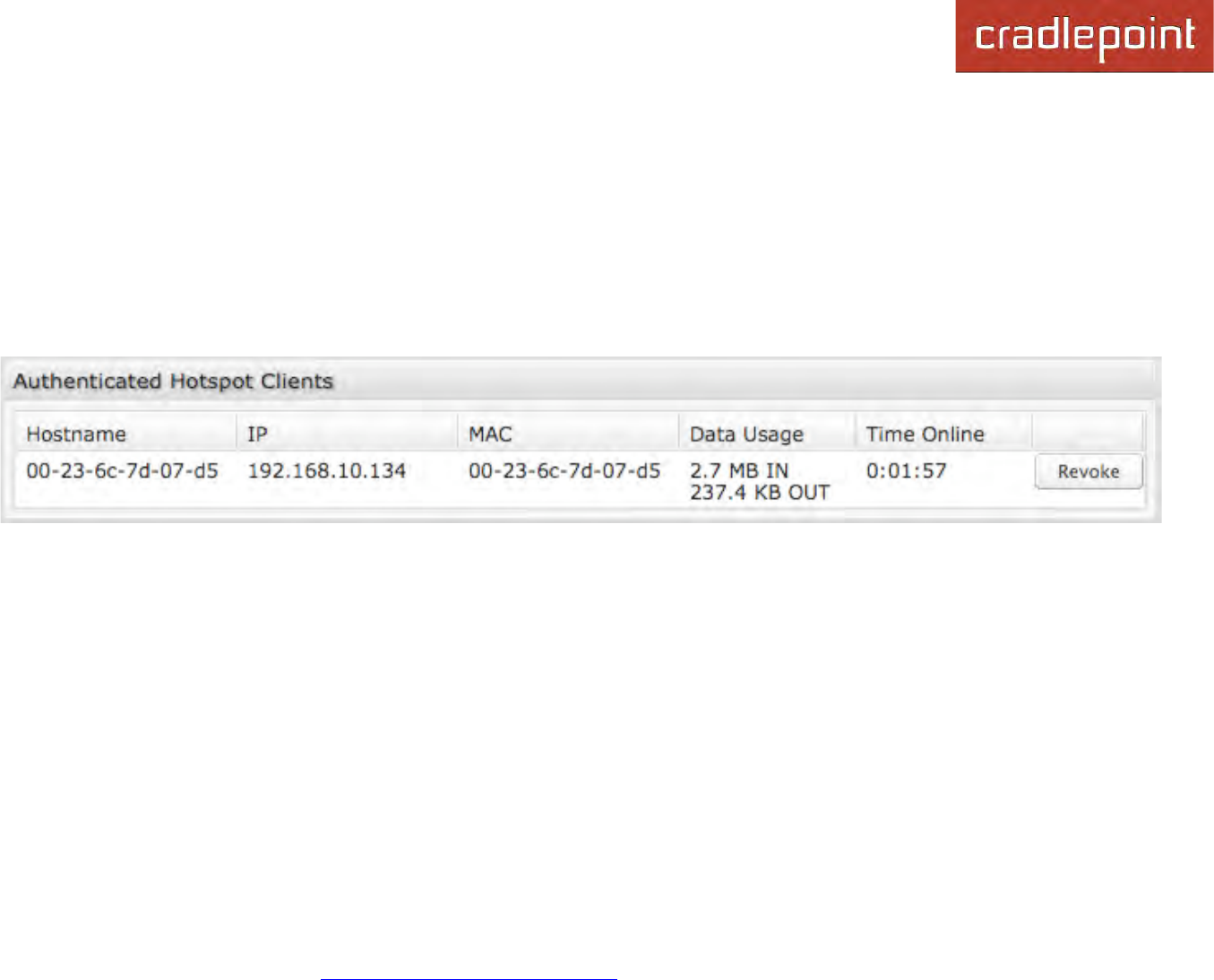 You may revoke a client's access to the Internet by clicking the 'Revoke' button.