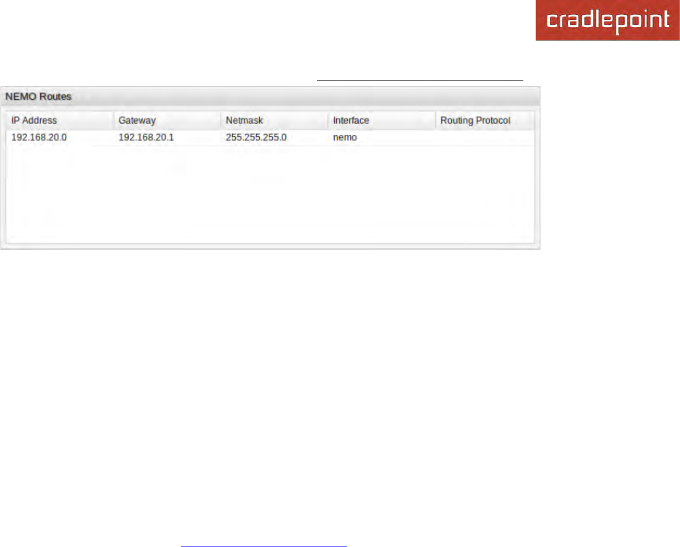 NEMO Routes displays user-specified routes configured in Internet → Network Mobility (NEMO).
