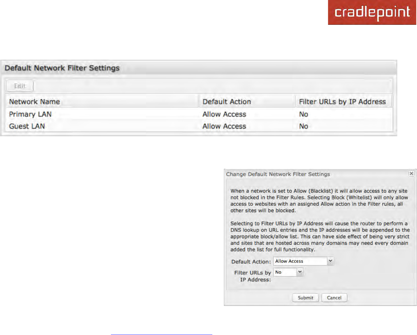 networks are set to allow website access by default. Select a network and click Edit to change the default filter settings.