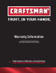 Warranty Information Click the below link for details http://www.craftsman.