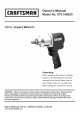 Owner's Manual Model No. 875.168820 Owner's Manual Model No. 875.168820 90 PSI Maximum This toot is designed to operate at an air Features & Benefits Specifications Product Warranty Compressor Requirements Important Safety Instructions Installation and Operation Maintenance Exploded View Drawing & Parts List Troubleshooting ONE YEAR FULL WARRANTY ON CRAFTSMAN TOOL gauge pressure (90 PSI) maximum, at the instructions and warnings before tool.