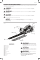Français • • • Transportez le taille-haie par la poignée de la détente avec la lame de coupe arrêtée. Une manutention appropriée du taille-haie réduira une possible blessure corporelle due aux lames de coupe. Tenez l’outil électrique seulement les surfaces de prise isolées puisque la lame de coupe peut entrer en contact avec les câbles cachés.