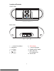 Location of Controls: FRONT VIEW MIC 1 2 3 4 5 6 7 REAR VIEW POWER DC ON OFF DC IN AUX IN 5V, 300 mA 9 8 1. – (Volume Down) Button 6. LED Indicator 7. + (Volume Up) Button 8. POWER ON/OFF Switch 2. Microphone 3. Button 4. 10 9. Micro USB Port (For Charging only) 10. AUX IN Jack Button 5.