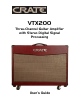 VTX200 Three-Channel Guitar Amplifier with Advanced DSP Congratulations! You are now the proud owner of the Crate VTX200 three-channel guitar amplifier with Stereo Digital Signal Processing (DSP). This rugged amplifier combines outstanding features with serious clean and distorted sounds. Dual DSP controls provide 15 “Must Have” effects and 15 Delay effects which can be combined for a wide variety of sounds.