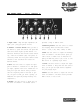 THE FRONT PANEL - Channel 2: 9.Channel 2 Select Switch: When you want to use Channel 2, press this switch. The amber LED above this switch lights up when Channel 2 is selected. The BV300H uses instant access switching – when the footswitch (#28, rear panel) is connected, either the front panel channel select switches or the footswitch will select the desired channel. 10.Gain: Use this control to adjust the input gain for Channel 2. Towards the “–” side gives you the classically British warm crunch.