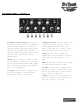 THE FRONT PANEL - Input, Channel 1: 1.Input Jack: 1 Meg Ohm input impedance 1/4” input jack – plug your guitar in here. 2.Channel 1 Select Switch: When you want to use Channel 1, press this switch. The green LED above this switch lights up when Channel 1 is selected. The BV300H uses instant access switching – when the footswitch (#28, rear panel) is connected, either the front panel channel select switches or the footswitch will select the desired channel. 3.