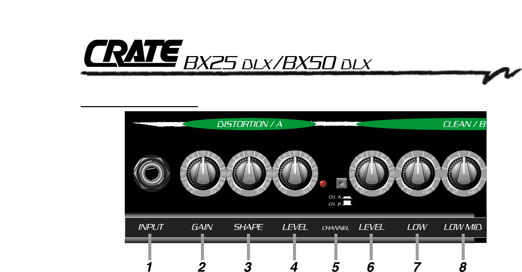 1. INPUT: Use this 1/4” jack to connect your bass to the amplifier by means of a shielded instrument cable.
