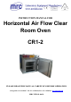 INSTRUCTION MANUAL FOR Horizontal Air Flow Clear Room Oven CR1-2 PLEASE READ THIS MANUAL CAREFULLY BEFORE OPERATION 3, Hagavish st. Israel 58817 Tel: 972 3 5595252, Fax: 972 3 5594529 mrc@mrclab.com MRC.VER.01-06.