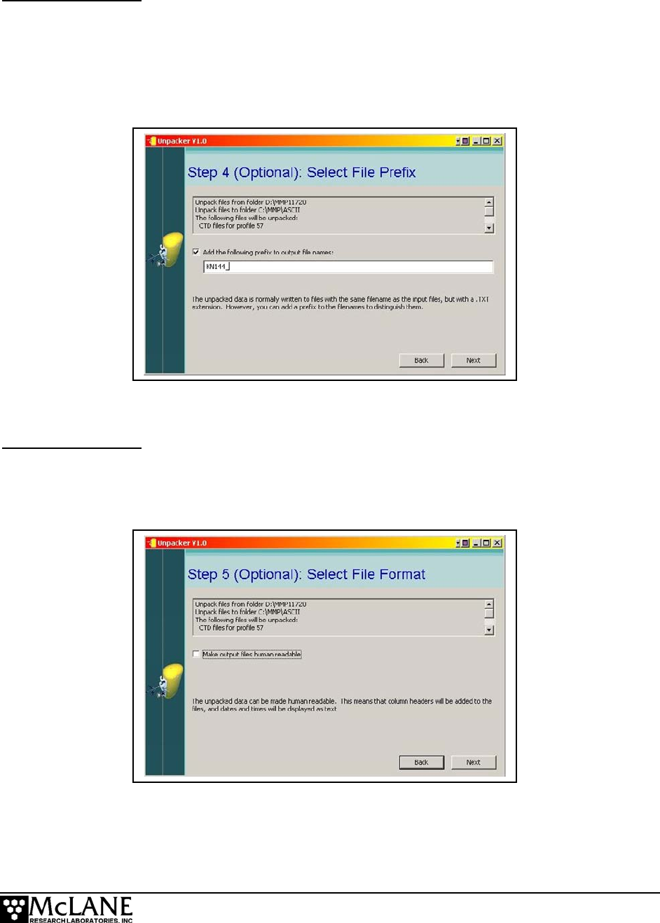 Step 4 optionally attaches a user-defined prefix to the unpacked data files so that the