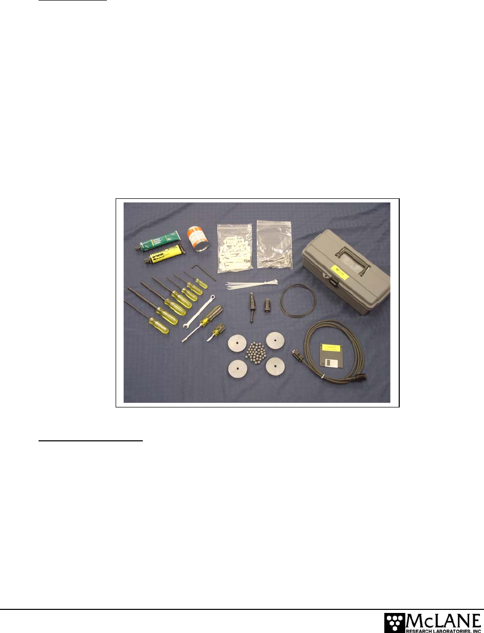 • Spare pressure housing o-rings, nylon and stainless steel screws and bolts, and ballast