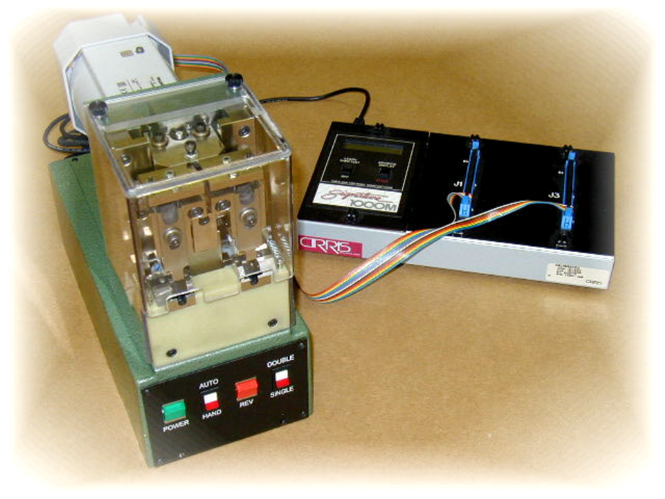 MANUAL FOR SPA-100 PRESS I. Set-up A) B) C) D) E) Refer to page 6 for a pictorial view while following instructions. Plug press into the wall outlet 110 volts. Plug cable tester into 110 volts outlet. Attach cables (supplied) to press and cable tester as labeled. Select proper combination of switches on press. 1) “Auto/Hand” (on press) 2) “Double/Single” (on press) 3) With a “known good cable” set-up a signature (on tester). II. Ready to run With the signature cable, insert into the nest(s).